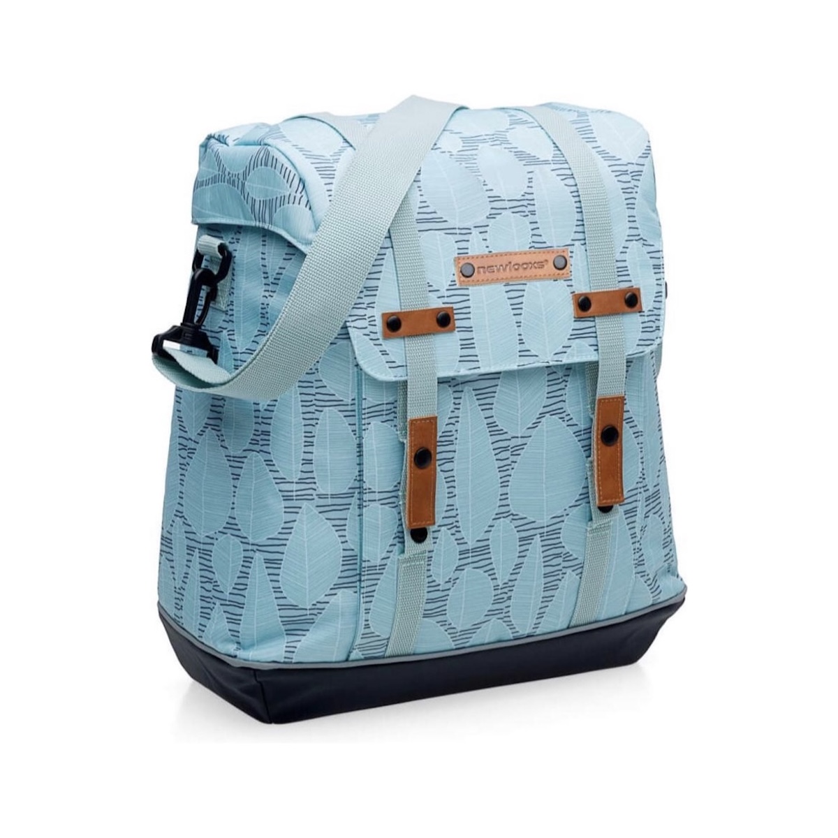 De New Looxs Alba Single is een ruime fietstas van 21 liter die je ook als schoudertas kunt gebruiken, ideaal voor boodschappen, werk of school. De stevige kliksluitingen maken de tas eenvoudig te openen en te sluiten, terwijl de afdekbare haken netjes wegvallen wanneer je de tas meeneemt. Dankzij het extra ritsvak berg je kleine spullen veilig op, en de reflectie zorgt voor extra zichtbaarheid. De lichtblauwe Alba is spatwaterafstotend en perfect geschikt voor elektrische fietsen.