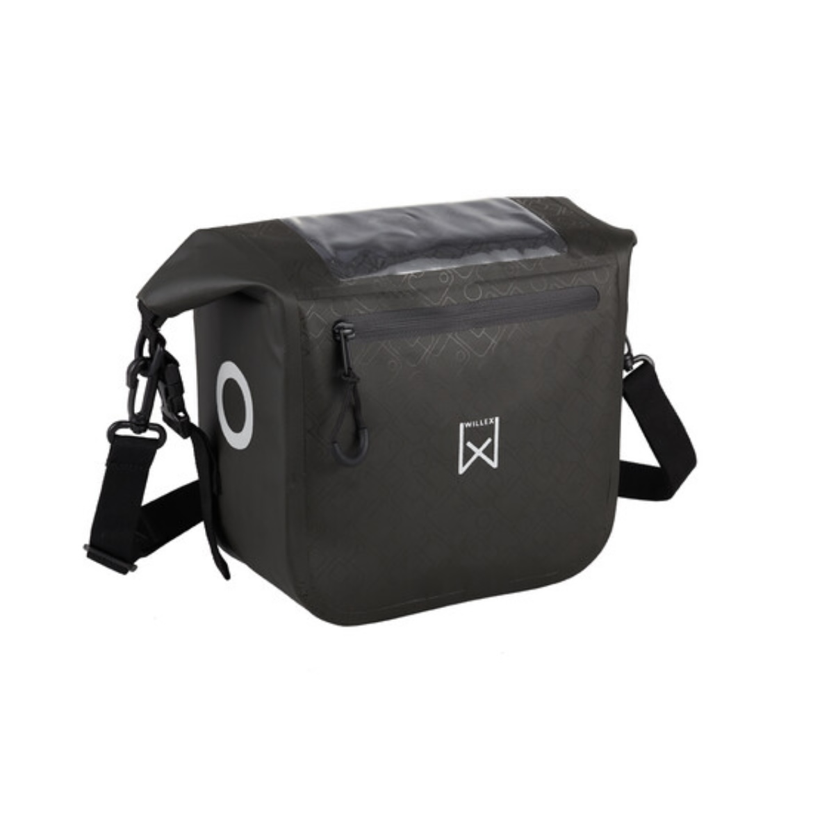 De Willex stuurfietstas is een multifunctionele tas met een inhoud van 5 liter, gemaakt van waterdicht bisonyl. Dankzij het Klickfix® kliksysteem (montagebeugel niet inbegrepen) bevestig je de tas eenvoudig aan het stuur. Voorzien van een reflecterende bedrukking, transparant vak voor smartphone of kaart, en een verstelbare schouderriem.